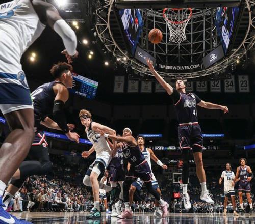 更为关键的是,在速度方面的差距也非常大。森林狼全场比赛都在保持一个极快的攻守转换和转移球,反观广州这边慢吞吞,体能上就已经有点跟不上了。所以在节奏的压制下,广州打得依然非常吃力。
