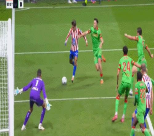 小西蒙尼右路强行突破下底,随即送出倒三角回传,阿尔马达跟上推射破门,马竞1-0领先!