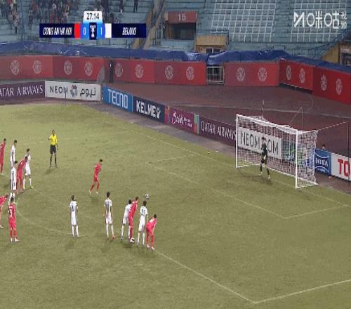 第5分钟,河内公安外援阿图尔禁区右侧起脚兜射击中立柱,国安逃过一劫!