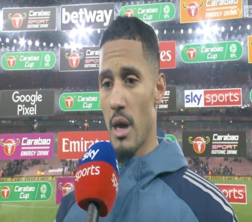 英联杯1/4决赛,阿森纳通过点球大战淘汰水晶宫,赛后,阿森纳后卫萨利巴接受了CBS体育的采访。威廉,在经历了这场令人难以置信的点球大战之后,你感觉如何?是的,我们非常高兴今天能进入
