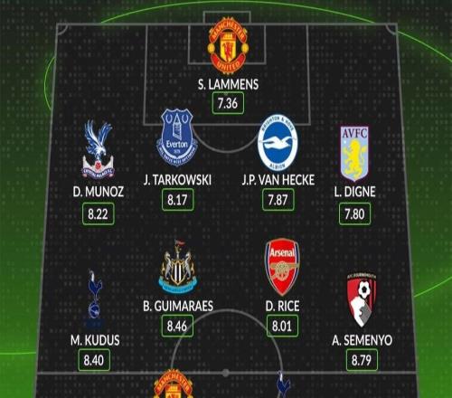 外媒评英超第7轮最佳阵容:曼联、热刺两人入选,赖斯在列