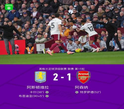 北京时间12月6日20:30,英超第15轮焦点战,阿森纳作客维拉公园球场挑战阿斯顿维拉,本场主裁判为彼得-班克斯。上半场,卡什小角度凌空破门。下半场,特罗萨德扳平比分,布恩迪亚读秒献